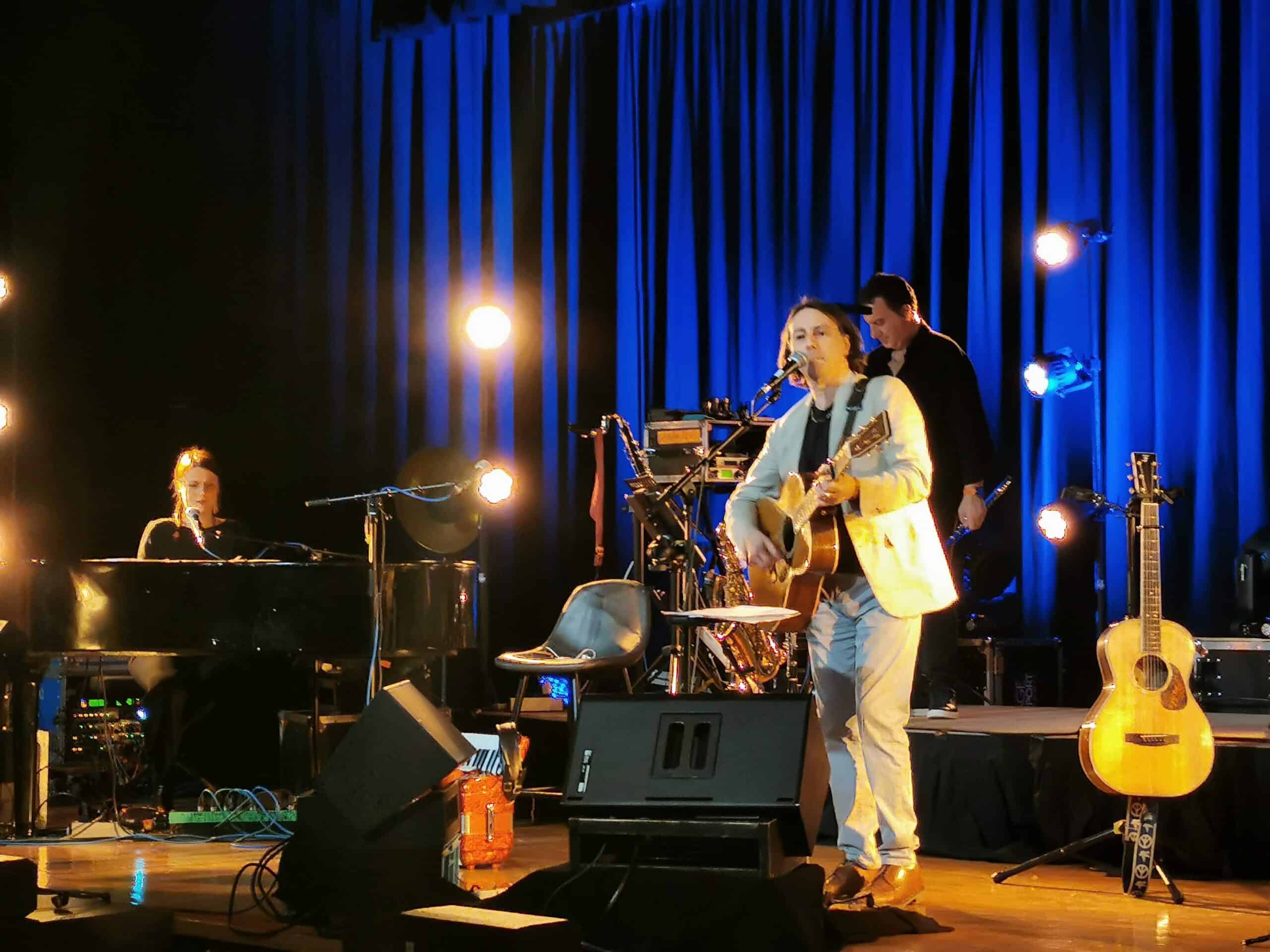 Schon der Auftakt des Abends war ein besonderer: Pollina betrat nicht gleich die Bühne, sondern kam gleichsam durch die „Hintertür“, streifte singend und – unplugged – Gitarre spielend durch den Saal, ehe er gemeinsam mit seinen Musikern die Bühne betrat.