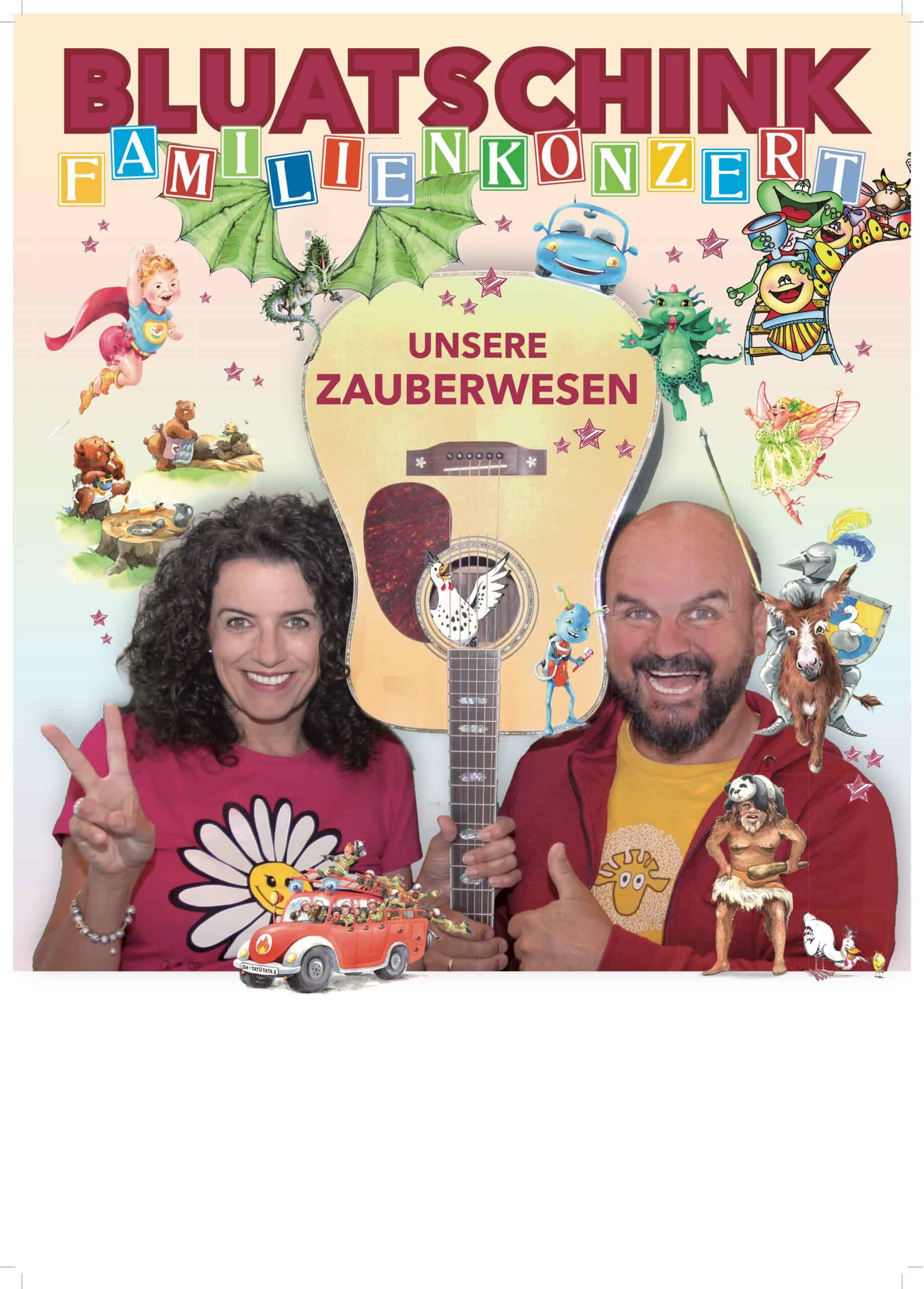 Über die Jahre hinweg hat „Bluatschink“ neben vielen CDs für die Erwachsenen („Funka fliaga“, „I han di gera“) auch immer Musik für Kinder gemacht. Bei diesen ganzen Programmen kamen bei den Kinder vor allem jene Songs gut an, bei denen sie so richtig von Herzen lachen konnten. Und dieses Lachen überträgt sich bei den Familienkonzerten auch auf die Erwachsenen – und das ist
